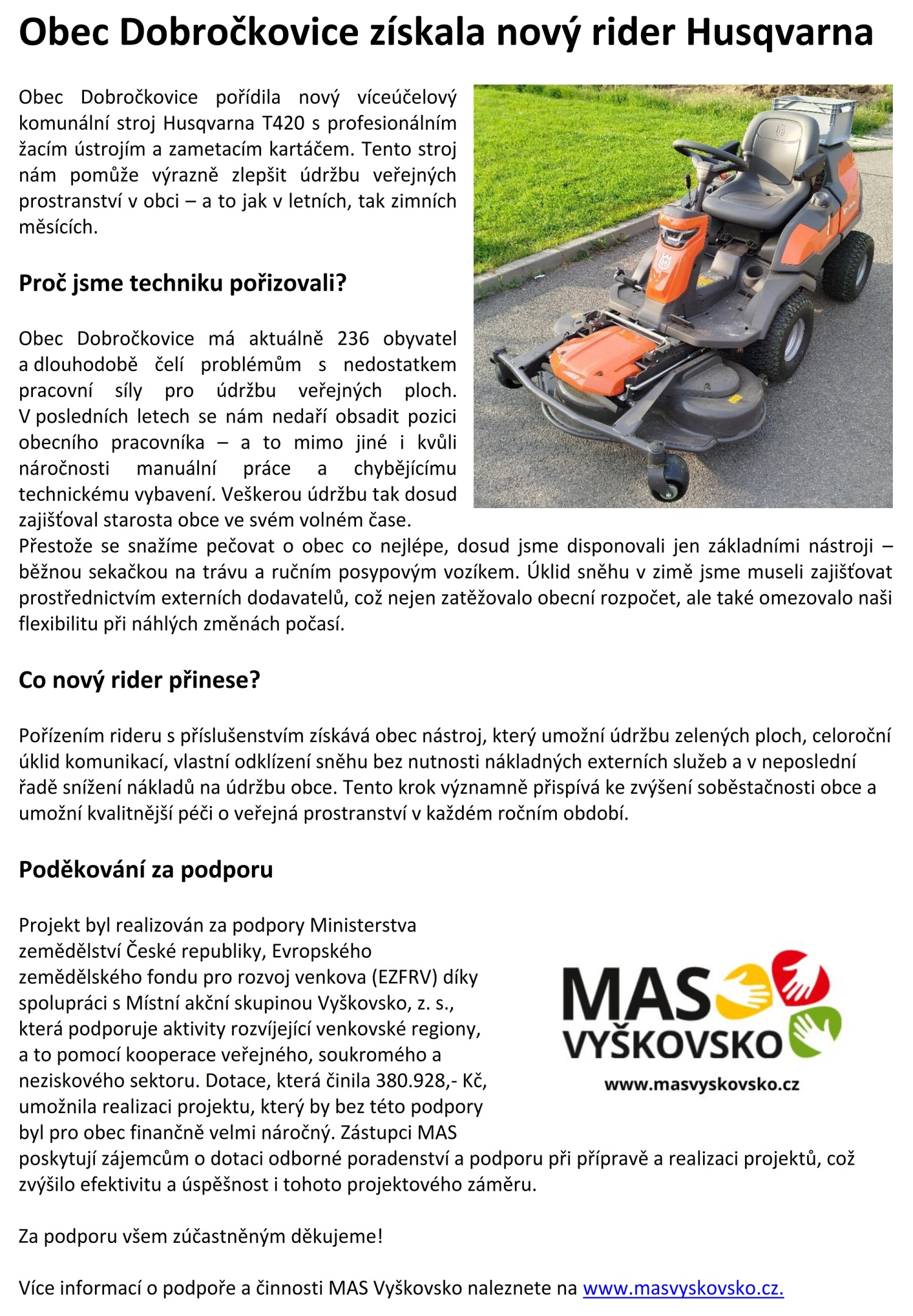 Projekt byl realizován za podpory www.masvyskovsko.cz.